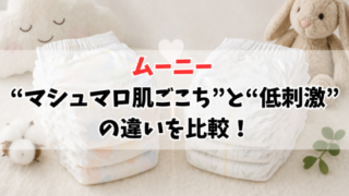 ムーニーの「マシュマロ肌ごこち」と「低刺激であんしん」の違いを徹底比較。肌ざわり・かぶれ対策・フィット感の違いをわかりやすく解説し、新生児に合うおむつ選びをサポートします。